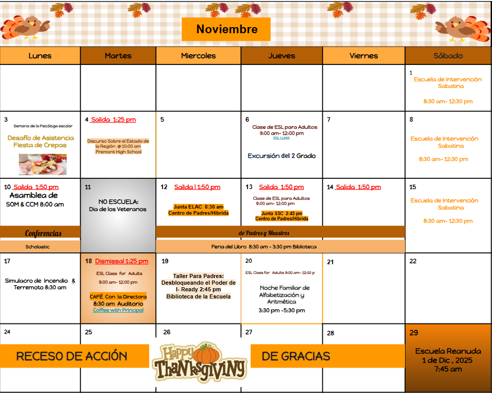 Calendario de Noviembre